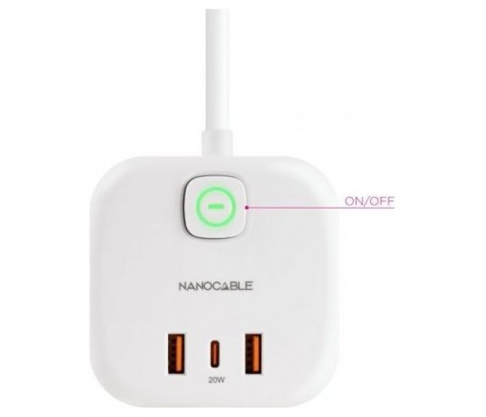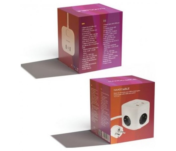 Regleta Nanocable 10.37.0011/ 3 Tomas de corriente/ 2 USB - 1 USB Tipo-C/ Cable 1.4m/ Blanca
