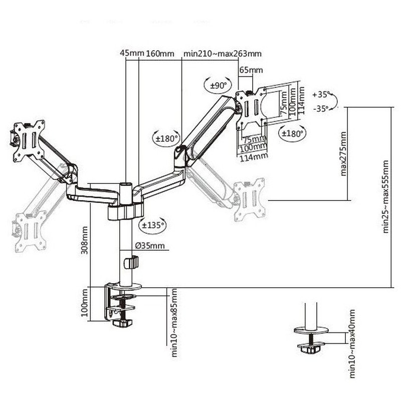 SOPORTE PANTALLA PARA MESA DOS BRAZOS 2 PANTALLAS 17 - 32 ALUMINIO MUELLE DE GAS EQUIP