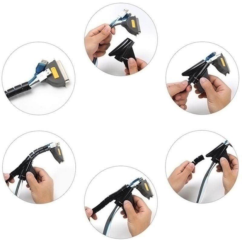 - Organizador de cables en espiral con capacidad de hasta 25mm de diámetro.