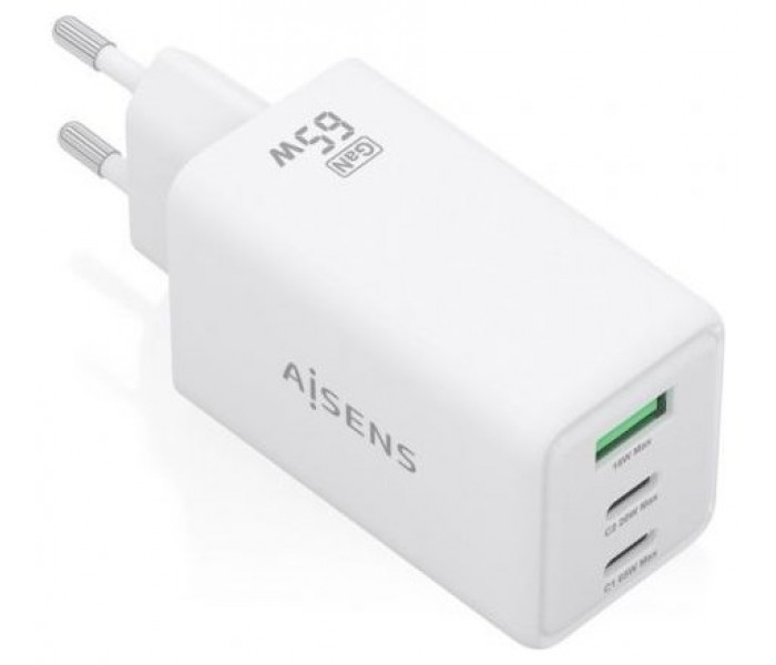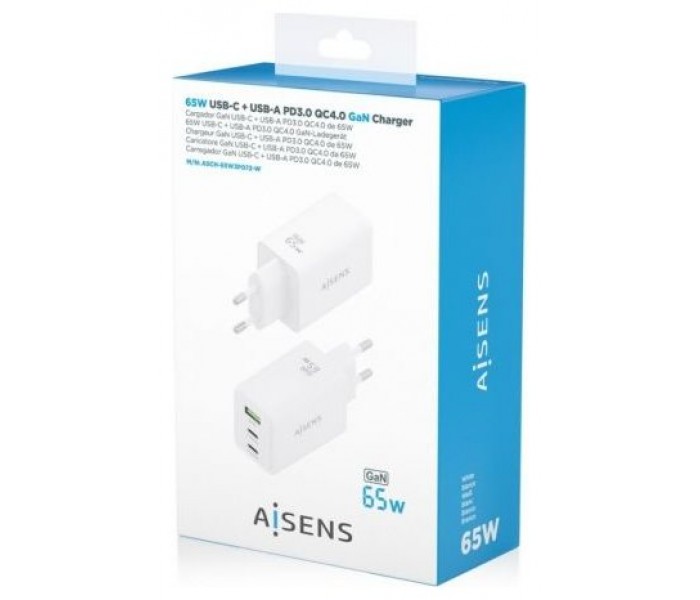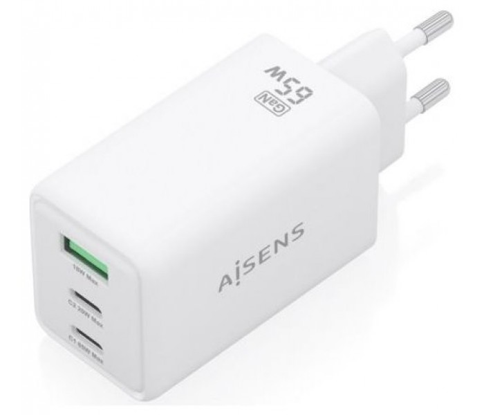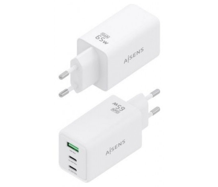 Cargador de Pared GaN Aisens ASCH-65W3P072-W/ 2xUSB Tipo-C/ 1xUSB/ 65W/ Blanco
