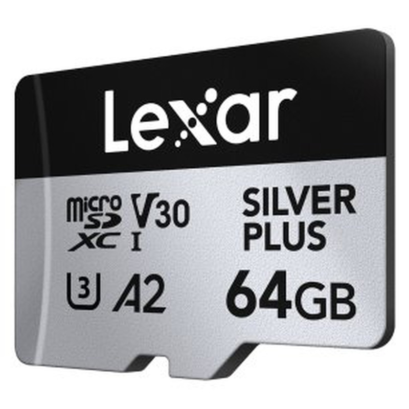 LEXAR 64GB LEXAR HIGH-PERFORMANCE SILVER PLUS MICROSDXC UHS-I, UP TO 205MB/S READ 100MB/S WRITE C10 A2 V30 U3, WITH ADAPTER
