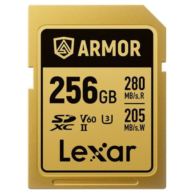 LEXAR 256GB PROFESSIONAL ARMOR GOLD SDXC UHS-II CARDS, UP TO 280MB/S READ 210MB/S WRITE C10 V60 U3,STAINLESS STEEL CASING, IP68