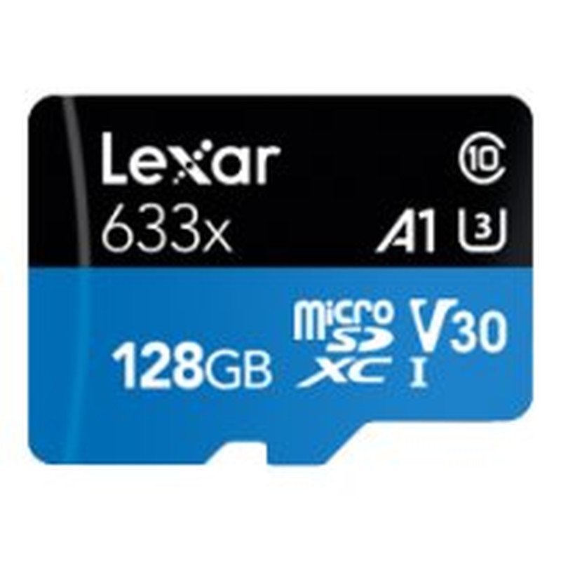 LEXAR 128GB HIGH-PERFORMANCE 633X MICROSDXC UHS-I WITH SD ADAPTER, UP TO 100MB/S READ 45MB/S WRITE C10 A1 V30 U3