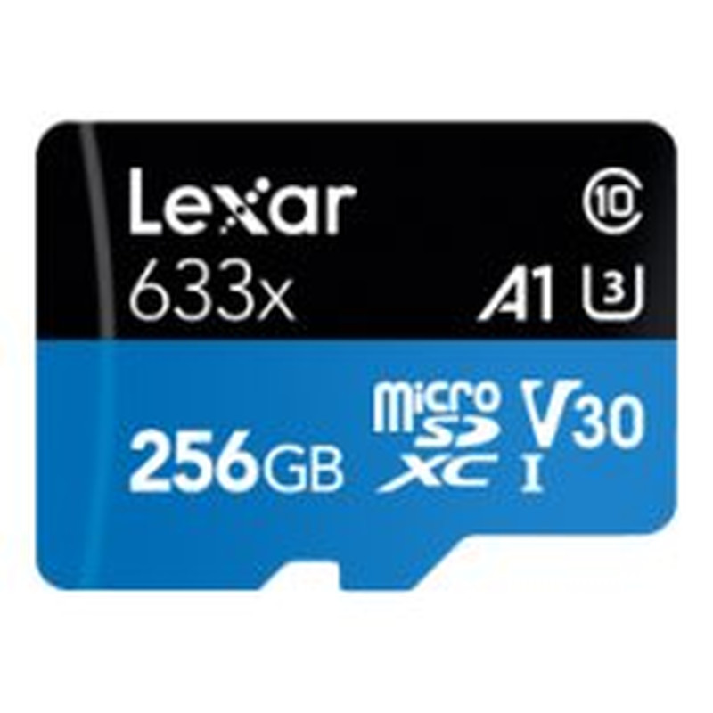 LEXAR 256GB HIGH-PERFORMANCE 633X MICROSDXC UHS-I WITH SD ADAPTER, UP TO 100MB/S READ 45MB/S WRITE C10 A1 V30 U3