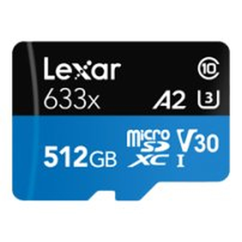 LEXAR 512GB HIGH-PERFORMANCE 633X MICROSDXC UHS-I WITH SD ADAPTER, UP TO 100MB/S READ 70MB/S WRITE C10 A2 V30 U3
