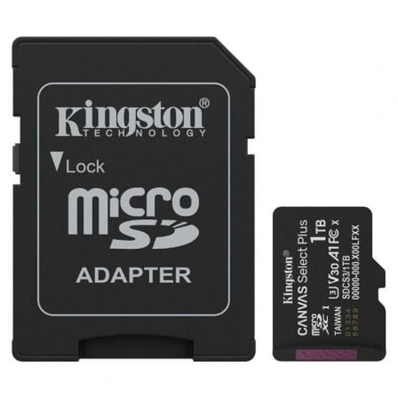 Tarjeta de Memoria Kingston CANVAS Select Plus 1TB microSD XC con Adaptador/ Clase 10/ 150MBs
