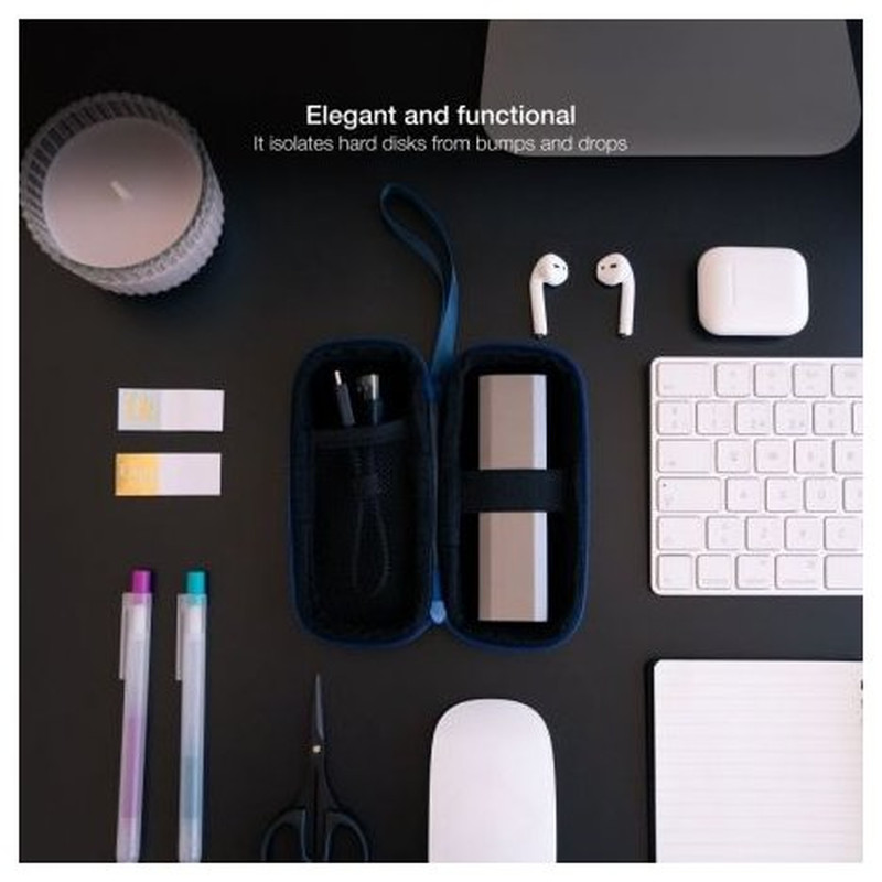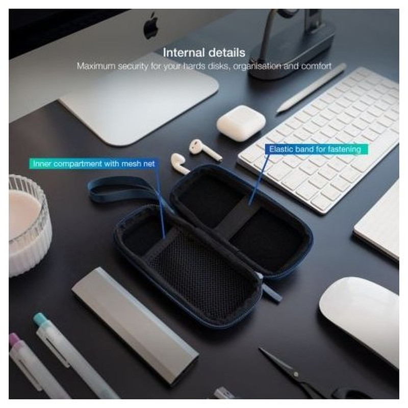 - Estuche compacto para guardar o transportar disco duro portátil.