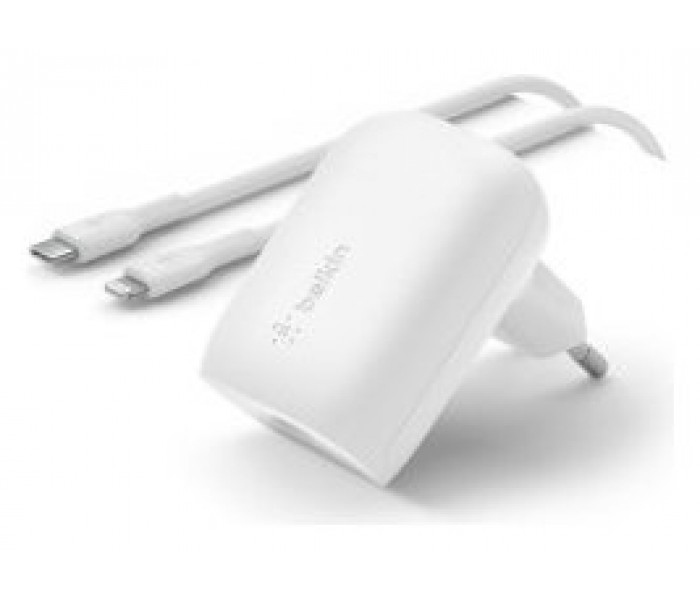 CARGADOR DE PARED BELKIN WCA005VF1MWH-B5 USB-C PD 30W + CABLE USB-C A LIGHTNING 1m COLOR BLANCO