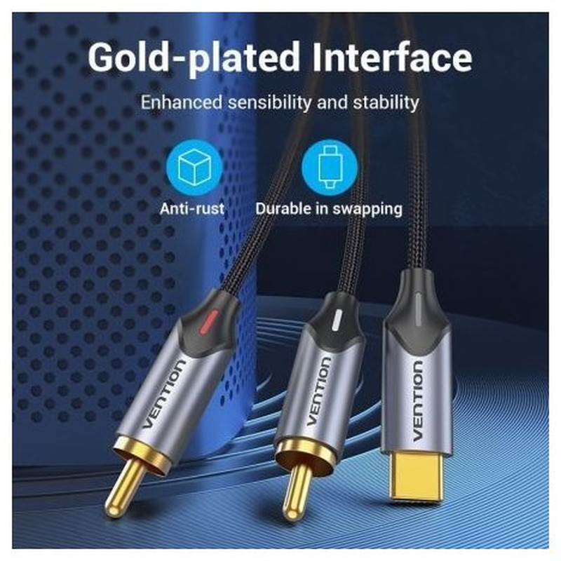CONVERSOR 2xRCA/M A USB-C/M 2 M GRIS VENTION (Espera 4 dias)