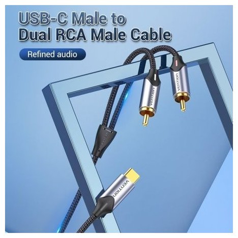 Cable Conversor Vention BGUHH/ 2x RCA Macho - USB Tipo-C Macho/ 2m/ Gris