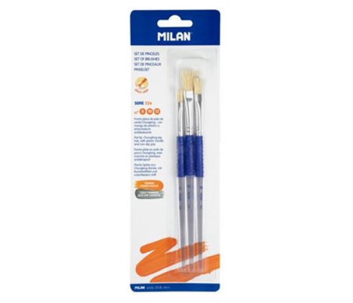 BLÍSTER 3 PINCELES PLANOS (PELO CERDA CHUNGKING) MANGO DE PLÁSTICO ERGO SERIE 526 Nº 8, 10 Y 12 MILAN BWM10464