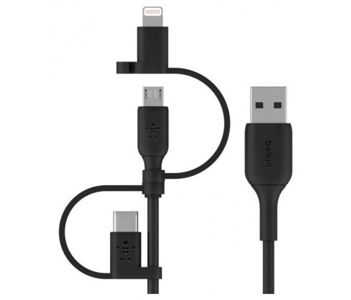 BELKIN BOOST CHARGE UNIVERSAL CHARGING CABLE (LIGHTNING/MICRO-USB/USB-C TO USB-A) CABLE, PVC, 1M, BLACK
