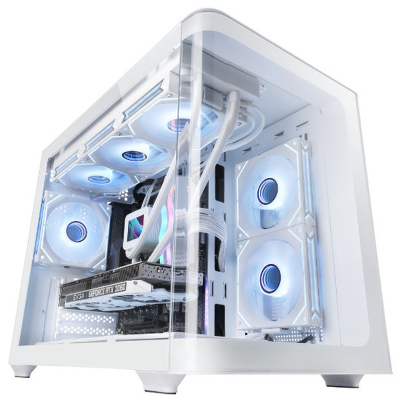 Minitorre custom showcase con estructura MicroATX, ventana completa lateral y ventana frontal con bordes curvados de cristal templado.. Estructura de doble cámara con gestión de cableado, soporte total para refrigeraciones líquidas de hasta 360mm y capacidad hasta 9 ventiladores.. Especificaciones. . Tipo. Minitorre. Diseño. Ventana lateral completa y frontal curva de cristal templado. Placas base. MicroATX / Mini-ITX. Ventiladores. Superior: 3x 120mm o 2x 140mm/ Interior: 2x 120mm o 2x 140mm /. Inferior: 3x 120mm / Trasero: 1x 120mm. Refrigeración líquida. Superior: 360, 280, 240, 140, 120mm / Interior: 240, 140, 120mm /. Inferior: 360, 240, 120mm / Trasero: 120mm. Bahías. 3x 2.5"" SSD / 2 x 3.5"" HDD. Ranuras de expansión. 5-445mm. VGA máxima. 150mm . VGA anchura máxima. 160mm . Puerto I/O. USB3.0 x1 / USB2.0 x2 / HD Audio + Mic (mezclado) . Extra. Diseño de doble cámara y sistema de gestión de cableado. Dimensiones. 475x285x370mm / 5.9Kg