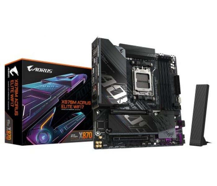 PLACA GIGABYTE X870M AORUS ELITE WF7,AMD,AM5,X870,4DDR5,256GB,1HDMI+2USB4,2SATA6+2M.2,2.5GBLAN+WIFI7+BT5.4,6USB3.2,MATX