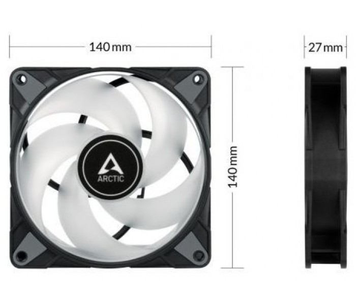 El ruido de funcionamiento del nuevo motor ARCTIC es prácticamente imperceptible, incluso a baja velocidad. Además, el P14 PWM PST A-RGB cuenta con superficies de contacto de goma, lo que minimiza las vibraciones audibles.