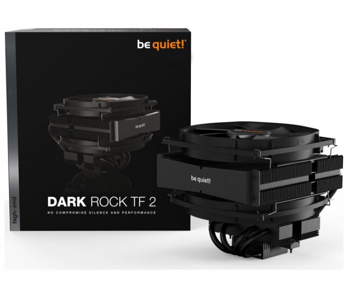 Gracias a su diseño de torre doble, este refrigerador es una auténtica maravilla de la refrigeración con 230 W TDP, es decir, perfecto para las condiciones extremas que se dan en PC de juegos con CPU sobreaceleradas que requieren un refrigerador TopFlow. Su diseño proporciona una refrigeración ideal para la CPU, además de los componentes cercanos. Con un Silent Wings 3 de 135 mm con forma de embudo como ventilador superior, el Dark Rock TF 2 ofrece la máxima capacidad de refrigeración. Al igual que el otro ventilador Silent Wings, presenta avanzados soportes dinámicos con lÃquido, motores de 6 polos de marcha suave y hasta nueve aletas con flujo de aire optimizado. El ruido es de solo 27,1 dB(A) incluso con el 100 % de velocidad de ventilador PWM. Las piezas de goma antivibración en las aletas de refrigeración del disipador térmico amortiguan el ruido todavÃa más. El Dark Rock TF 2 presenta seis tubos termosifón de cobre de alto rendimiento. Transportan el calor a las ubicaciones óptimas en las aletas de refrigeración. El Dark Rock TF 2 incluye dos disipadores térmicos de aluminio instalados para ahorrar espacio de memoria con una altura de 49 mm. Se puede instalar directamente con dos ventiladores, pero también es posible un ensamblaje único.