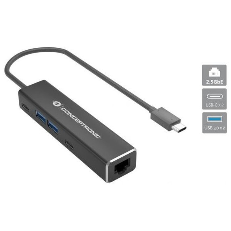ADAPTADOR USB-C A RED 2.5Gb RJ45 CONCEPTRONIC CON HUB USB 3.2 2 USC-C 2P USB-A G