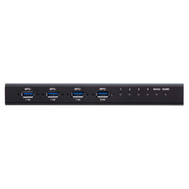 El US3344I es un conmutador industrial de 4 puertos USB3.1 Gen1 que permite a 4 ordenadores compartir el uso de dispositivos USB3.1 Gen1, como el teclado, el ratón y otros dispositivos periféricos. El enfoque periférico se puede dar a un ordenador manualmente utilizando el pulsador del interruptor. Elimina el costo de implementar los complicados sistemas y equipos redundantes para cada computadora. El chasis US3344I y el diseño para montaje en bastidor son adecuados para el entorno industrial. Para mayor comodidad, cuenta con un puerto de control remoto externo que puede simplificar la disposición del cableado a través de las señales tradicionales RS-422/RS-485. El US3344I permite una instalación limpia y ordenada - Los cables USB están incluidos para ahorrar el costo adicional de comprar cables USB.