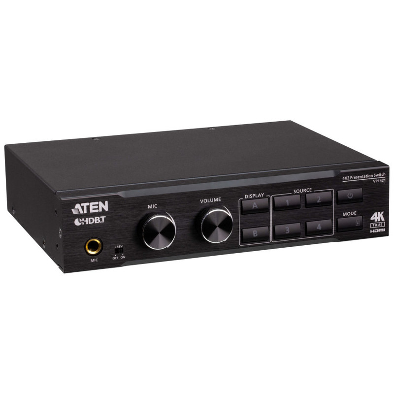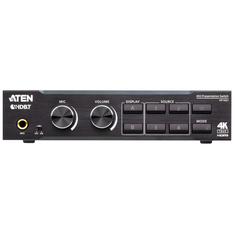 ATEN Switch de presentación True 4K 4 x 2 con escalador de vídeo, DSP y HDBaseT-Lite (Espera 4 dias)