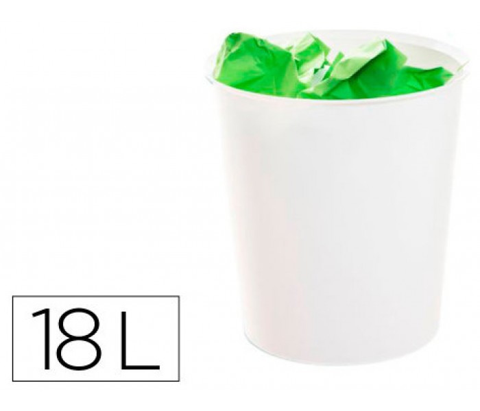 PAPELERA 18 LITROS POLIPROPILENO 100% RECICLADO Y RECICLABLE 290 X 310 MM BLANCO ARCHIVO 2000 2001 BL PS
