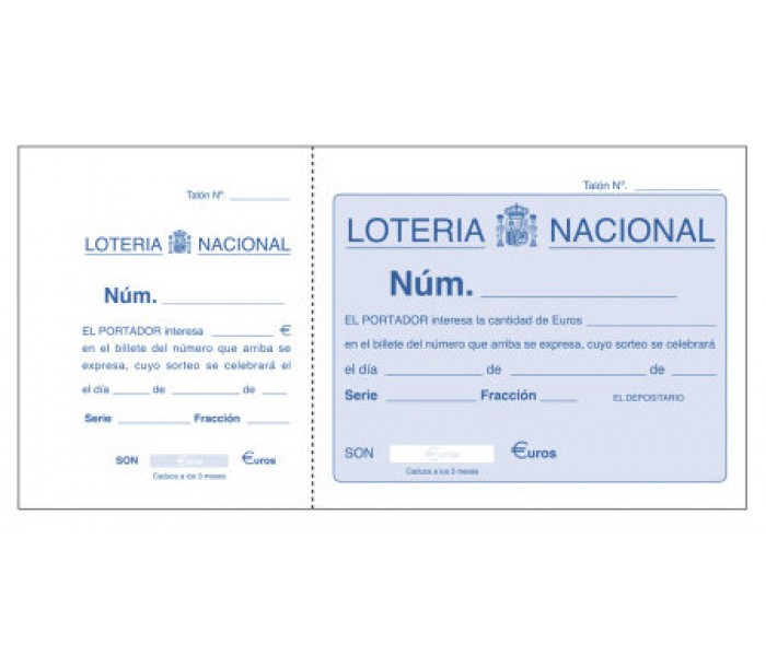 TALONARIO 100 HOJAS LOTERÍA 1/3 APAISADO SENCILLO DOHE 50015 (Espera 4 dias)