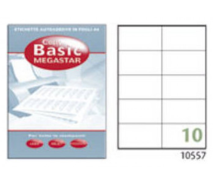 CAJA 100 HOJAS ETIQUETAS BLANCAS CON MÁRGENES-LÁSER/INYECCIÓN DE TINTA/FOTOCOPIADORAS-105X57 MM MEGASTAR LP4MS-10557 (Espera 4 dias)