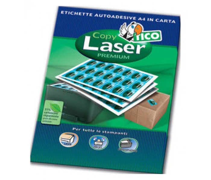 Tico Copy laser premium. Color del producto: Blanco, Formato: A4, Material: Papel. Ancho: 105 mm, Altura: 148 mm. Etiquetas por paquete: 400 pieza(s), Hojas de medios por paquete: 100 hojas, Tipo de embalaje: Caja