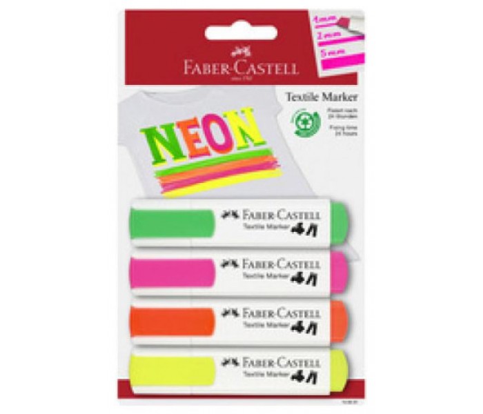 BLÍSTER 4 MARCADORES TEXTILES SURTIDOS COLORES NEÓN FABER CASTELL 159591 (Espera 4 dias)