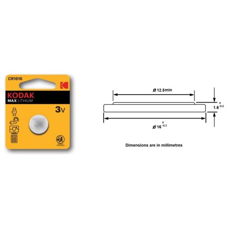 PILAS CR1616 KODAK BOTON LITIO 3V PACK 2 UNIDADES