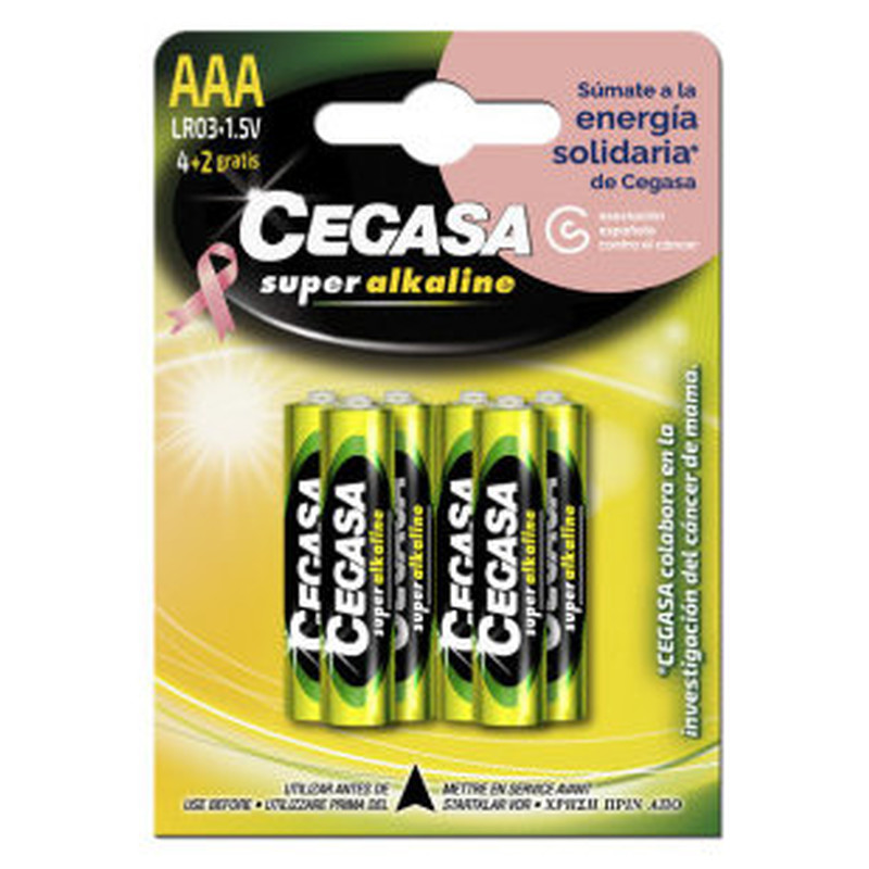 BLISTER 4+2 PILAS SUPER ALKALINAS LR03 - E92 (AAA) CANCER MAMA CEGASA 329057