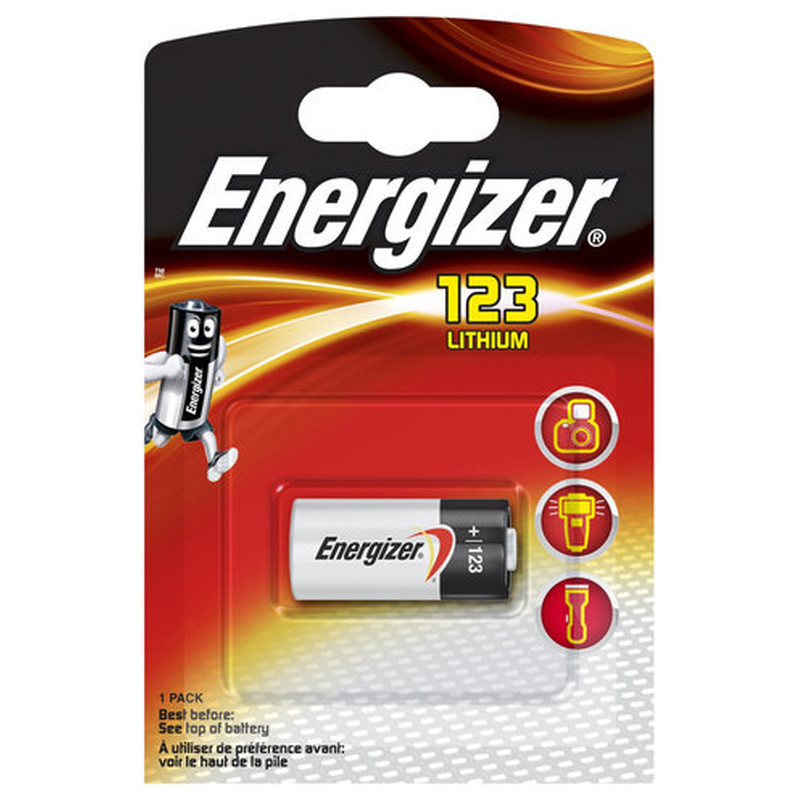 Energizer EN123P1. Tecnología de batería: Litio, Capacidad de batería: 1500 mAh, Utilizar con: Cámara. Ancho: 17 mm, Profundidad: 17 mm, Altura: 34,5 mm. Tipo de embalaje: Ampolla