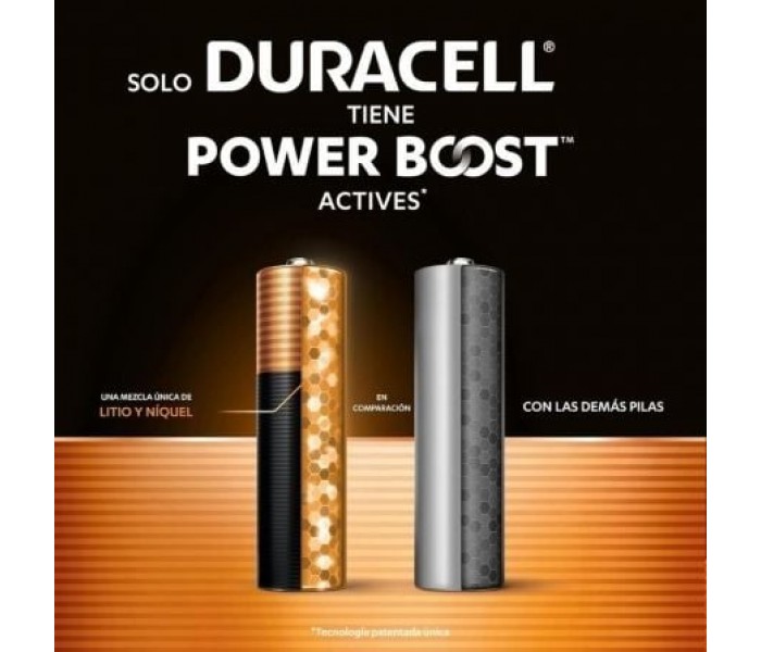 Las pilas alcalinas AA Duracell Plus contienen los activos patentados POWER BOOST, una mezcla única de litio y níquel, que ofrece un rendimiento duradero para tus dispositivos