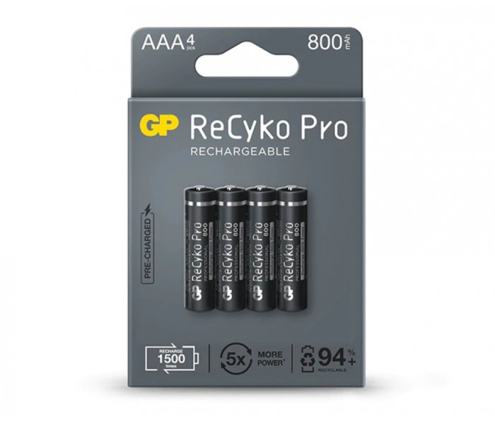 PILA RECARGABLE GP AAA SIN DESCARGA 800mAh (4 UD)
