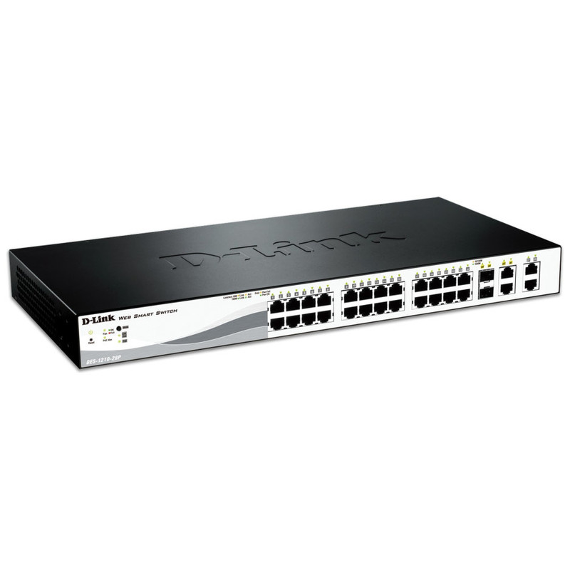 SWITCH SMART MANAGED D-LINK DES-1210-28P - 24 PUERTOS 10/100 - 2 PUERTOS 10/100/1000 - 2 PUERTOS 1000/SFP - ALIMENTACIÓN POE (24 PUERTOS) - ENRACABLE
