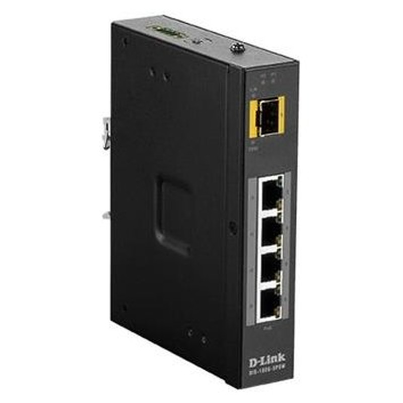 ? Enchufar y listo. DIS-100G-5PSW transmite de forma eficiente los datos Ethernet.? Diseñado con 4 x puertos 100/1000Base T PoE y ranuras SFP x 100/1000Base para adaptarse a una amplia gama de dispositivos y facilitar el despliegue de la red.? Certificaciones de entorno IEC (vibración, choque, caída libre), NEMA?TS2 Section 2, compatibilidad electromagnética (EMC), Seguridad (UL, IEC) para maximizar el tiempo de funcionamiento de la red en una variedad de entornos de despliegue de alta exigencia, incluyendo vigilancia urbana inteligente, automatización de fábricas y redes WiFi externas.? Funciona sin esfuerzo en un rango de ambientes industriales y agresivos en temperaturas desde -40°C hasta +75°C, y puede arrancar en frío desde -40°C.? La robusta carcasa ha sido creada para mantener su red protegida y resistente. Por esta razón, cada switch DIS viene con una garantía de 5 años de D-Link.? Con 120 W de PoE Budget, se ha diseñado para suministrar datos y alimentación eléctrica mediante Power Over Ethernet a dispositivos compatibles, lo que también elimina la necesidad de enchufes y cables innecesarios y reduce el tiempo y el esfuerzo de despliegue.? Para la instalación instantánea cuenta con un clip de raíl DIN de ajuste rápido, y también admite el montaje en la pared.? Sin piezas móviles en el interior para reducir los tiempos de inactividad y las llamadas de mantenimiento, la robusta carcasa ha sido optimizada para la transferencia de calor.? Discreto pero con alto rendimiento. Para aprovechar al máximo el espacio del bastidor, mide: 139 x 29 x 107 mm.