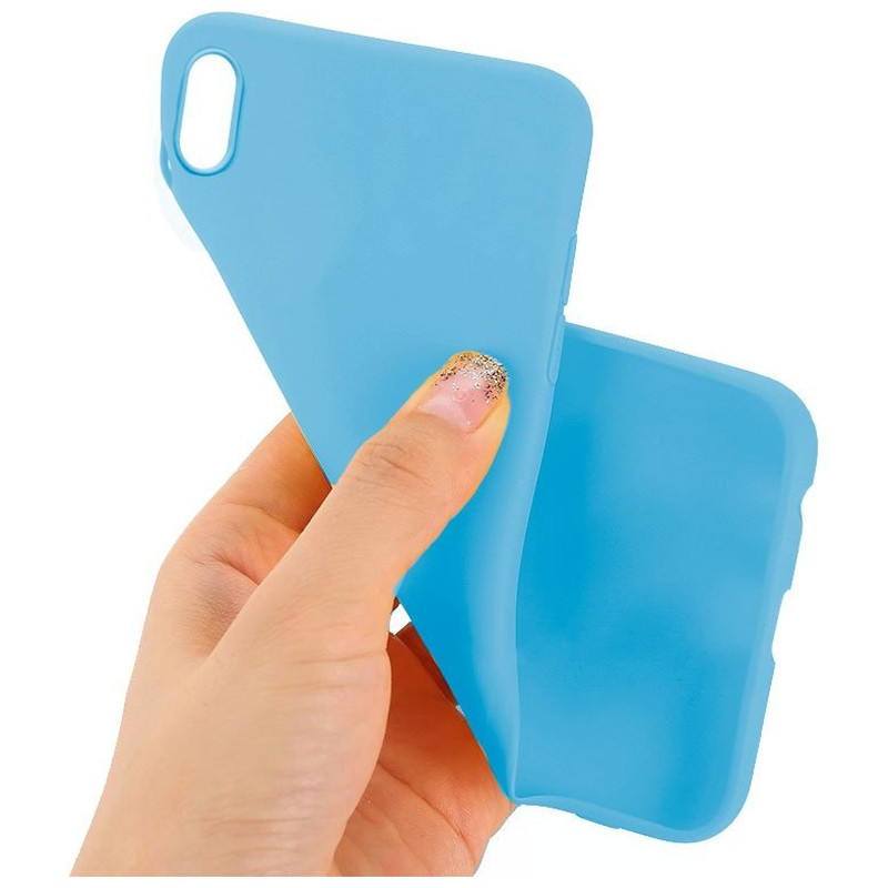 Funda silicona iPhone XS Max de color celeste.