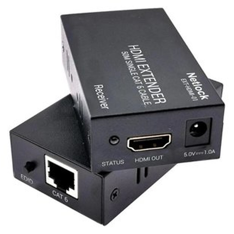 | Características | - Permite extender la señal HDMI con hasta 50 m - El amplificador digital mejora la calidad de la señal y aumenta la distancia de transmisión - Funciona a través de cable CAT6 LAN única, incluyendo la transmisión de información del monitor EDID |