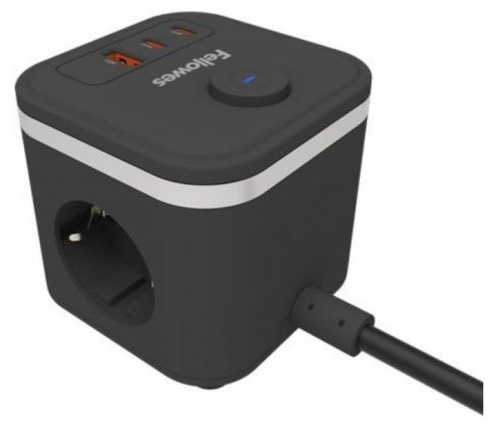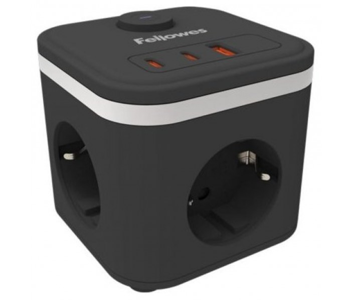 Regleta con Interruptor Fellowes/ 3 Tomas de corriente/ 1 USB - 2 USB Tipo-C/ Cable 2m/ Negra
