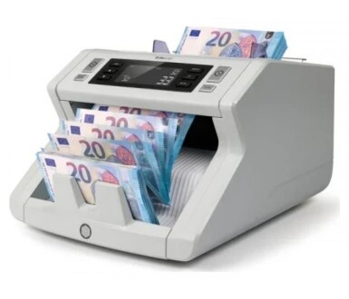 Cuenta 1.000 billetes por minuto. Para todas las divisas. Tolva para 300 billetes. Forma de detección: UV y tamaño (2210) y UV, MG y tamaño (2250). Función de añadir y de fajos. Alarma billetes sospechosos. 3 años garantía regisrndo el producto en la web de Safescan.