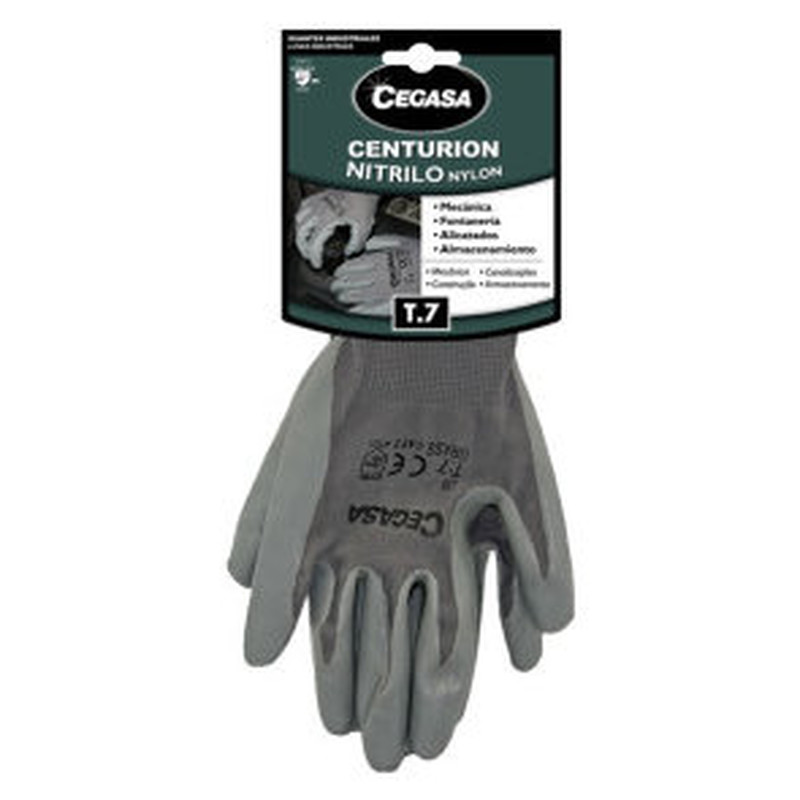 • GUANTES DE TRABAJO CENTURION NITRILO/NYLON GRIS T7-PEQUEÑA S CEGASA 327098 (Espera 4 dias)