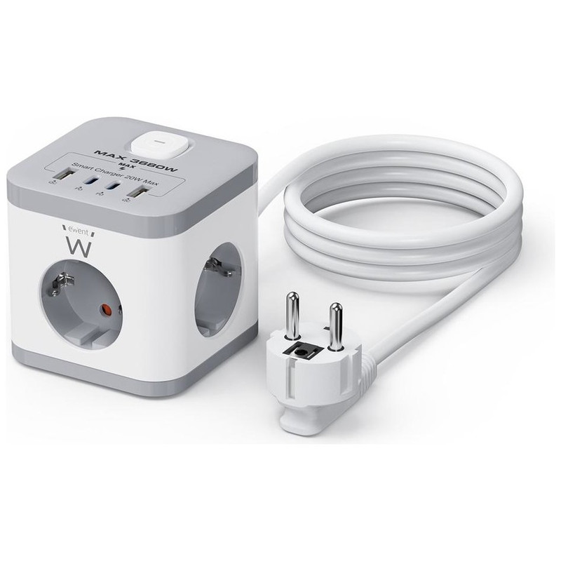 • Ewent EW3863 Regleta 3 Tomas SHUCKO+2USB-A+2USB-C
