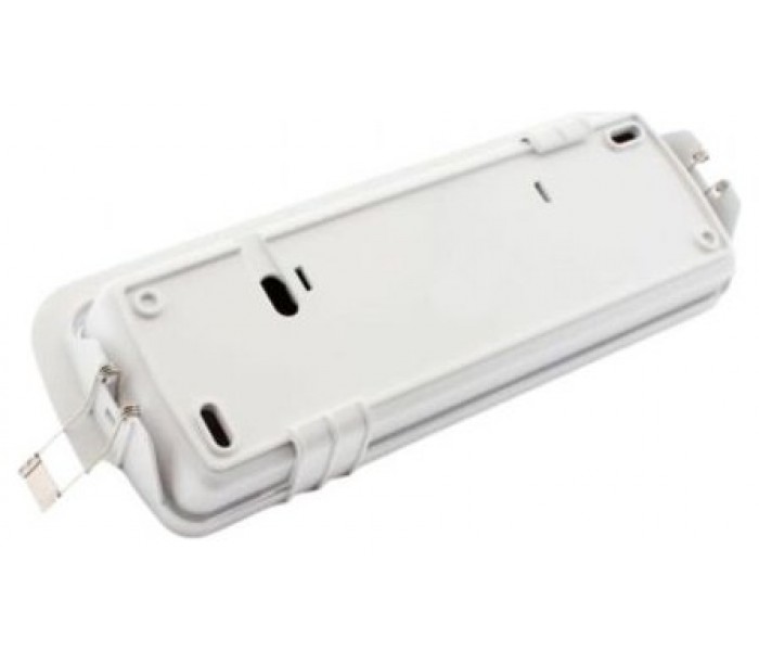 Luminaria LED de emergencia fabricada con un cuerpo de policarbonato en blanco y un difusor del mismo material. Cuenta con una potencia de 400 lúmenes, un ángulo de apertura de 120º y un IP43.