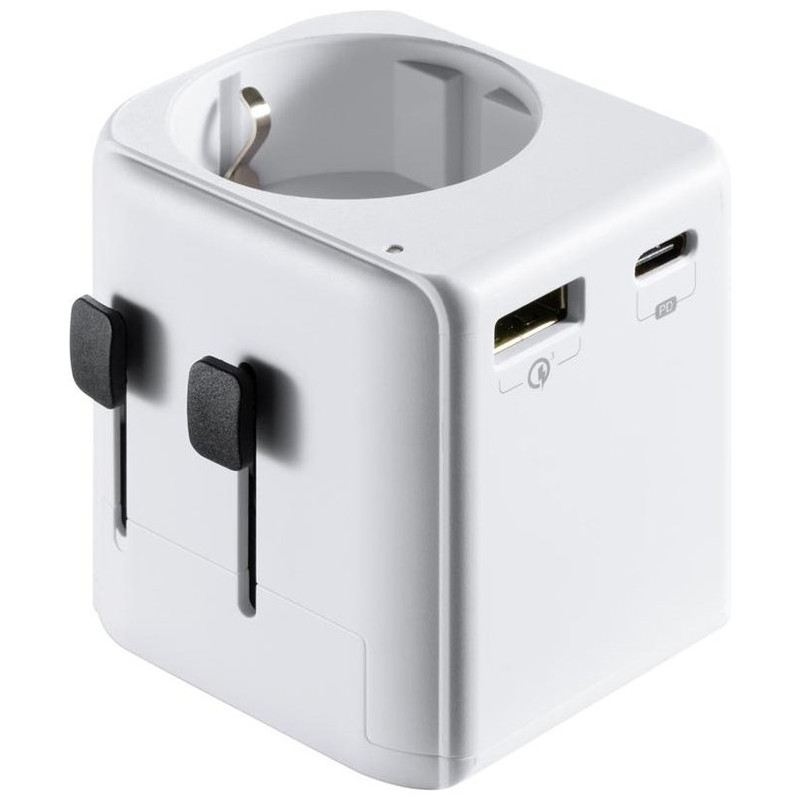 Adaptador de viaje universal con enchufes usa - uk - aus - china y toma schuko. con 1 puerto usb y 1 tipo - c