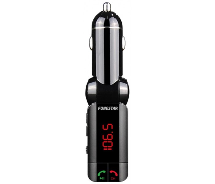 Transmisor FM FONESTAR TL-3UB para el mechero del coche, emite audio en la frecuencia deseada para sintonizarla desde la radio del coche, receptor Bluetooth versión 3.0, reproduce música en formato MP3 a través de USB, smartphones, tablets y otros dispositivos Bluetooth, manos libres para llamadas con micrófono integrado, distancia efectiva de micrófono entre 0.5 y 2 metros, tecnología de cancelación de ecos y reducción de ruidos, 2 puertos de carga para smartphones y tablets, conector USB de doble cara, puede ser enchufado en cualquier sentido, salida FM o auxiliar, indicador de nivel de batería del coche, pantalla de información, diseñado para adaptarse a cualquier vehículo. Incluye cable de audio.