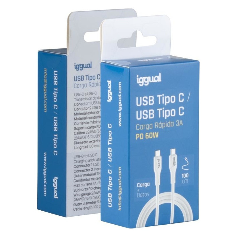 iggual Cable USB-C/USB-C 100 cm blanco Q3.0 3A 60W