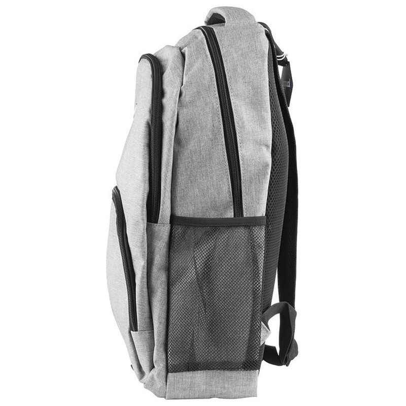 | Características | - Portátil de hasta 15,6" - Dos compartimentos separados - Bolsillo exterior frontal - Bolsillos laterales de rejilla - Material exterior: tela de poliéster Oxford - Resistente a salpicaduras - Material interior: poliéster - Color interior: negro - Color exterior: gris - Medidas: 47 alto x 32 ancho x 14,5 profundo cm - Peso: 580 g |