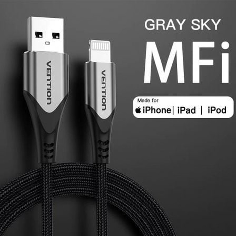 Cable USB 2.0 Lightning Vention LABHH/ USB Macho - Lightning Macho/ 2m/ Gris