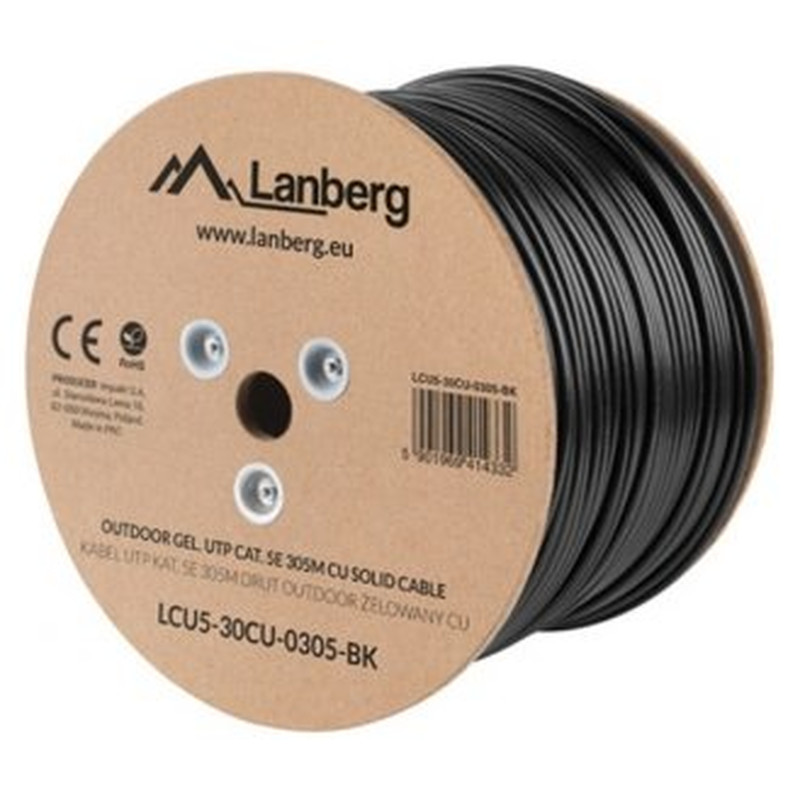 BOBINA CABLE RED LANBERG EXTERIOR UTP RJ45 CAT.5E SOLIDO CU AWG24 305M NEGRO FLU