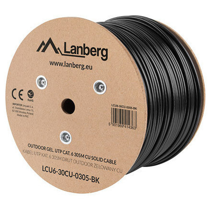 BOBINA CAT.6 LANBERG OUTDOOR UTP RJ45 COBRE GEL-FILLED FLUKE AWG24 305M NEGRO