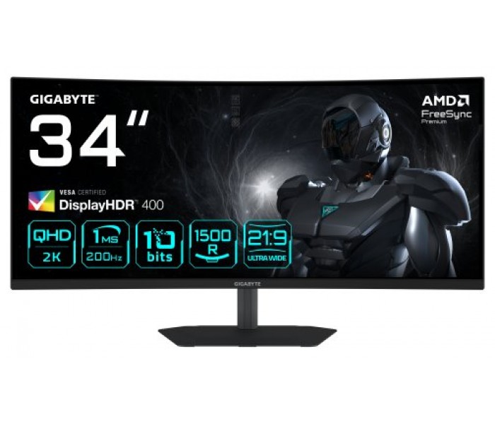 GIGABYTE G34WQC2 Monitor Gaming Curvo 34” WQHD - 3440 x 1440, 1500R, 200Hz, 1ms, 450 cd/m², AMD FreeSync Premium, DisplayHDR 400, HDMI 2.0, Displayport 1.4 (Espera 4 dias)